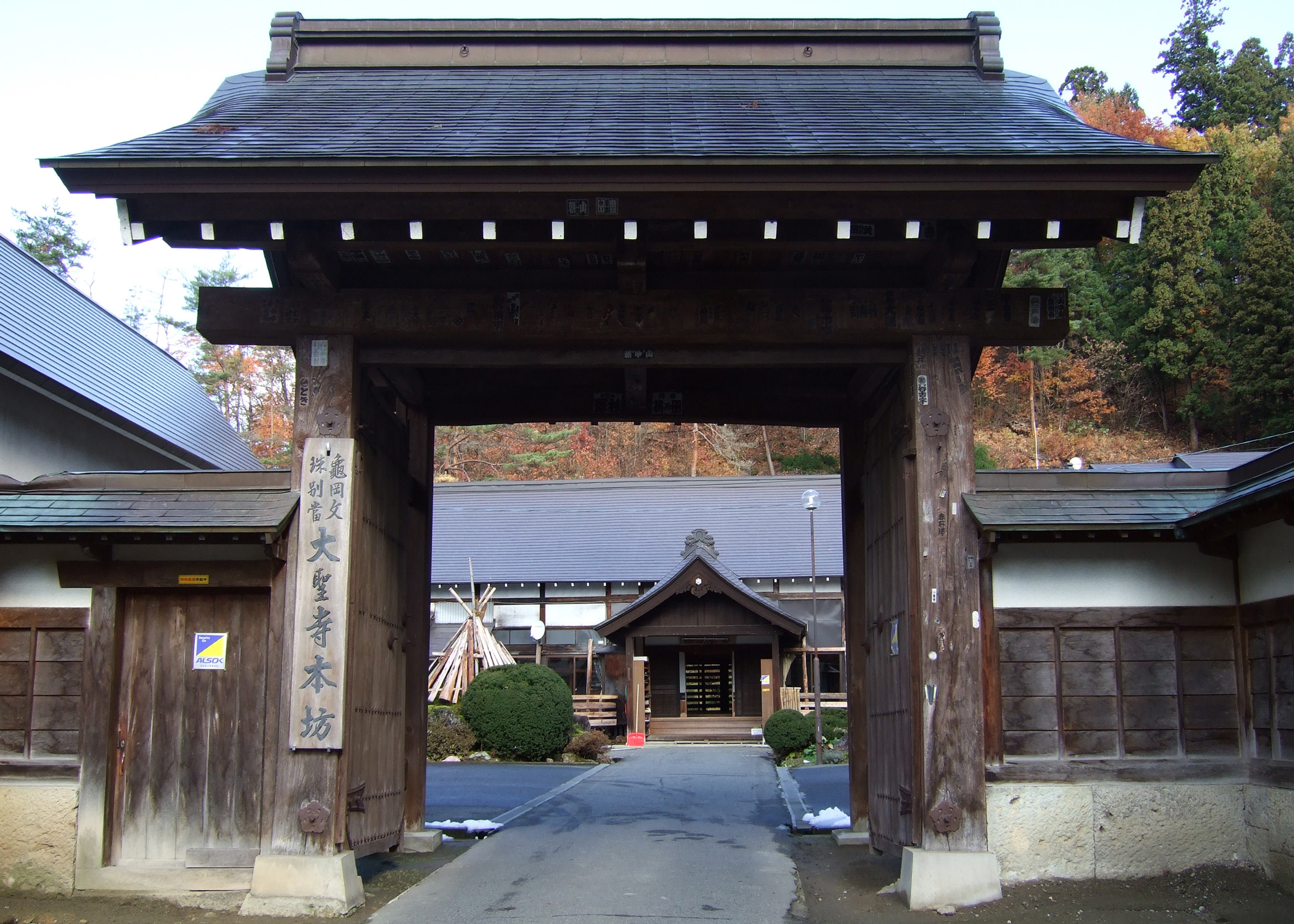 | 日本三文殊の一つ高畠町の亀岡文殊には、直江兼続、前田慶次らの奉納した直筆の詩歌百首があるとのこと。かつて受験が間近に迫った冬には参拝したが、晩秋に訪れたことはなかった。参道が水屋の所で左に曲がる、ここの雰囲気はいつ来ても素晴らしい! 本堂は残念ながら雪囲いされていて、写真にならなかったが、いずれ・・・ | |