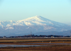 ![]() 2月、夕方の鳥海山、田んぼに白鳥が! |