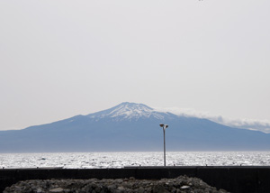 ![]() 5月、昼の鳥海山、日本海の飛島から |